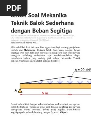 Contoh Soal Mekanika Teknik Beban Merata - Mengitung Rav Dan Rab Dalam Mekanika Teknik : Saya kali ini akan membahas contoh soal mektek yaitu menghitung lendutan yang terjadi pada balok sederhana dengan beban merata pada seluruh bentangnya.. Saya kali ini akan membahas contoh soal mektek yaitu menghitung lendutan yang terjadi pada balok sederhana dengan beban merata pada seluruh bentangnya. Saya mau minta bntu kerjakan soal mekanika rekayasa. Balok kantilever dengan beban terpusat. Gambar konstruksi jembatan dalam mekanika teknik. Beban yang mengenai struktur tidak terpusat tetapi terdistribusi, baik terdistribusi merata ataupun tidak merata.